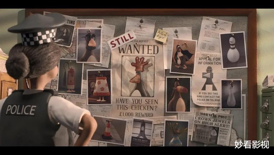 警察局档案室里,《小鸡快跑》的越狱海报和《小羊肖恩》的羊毛商标藏在文件堆下。