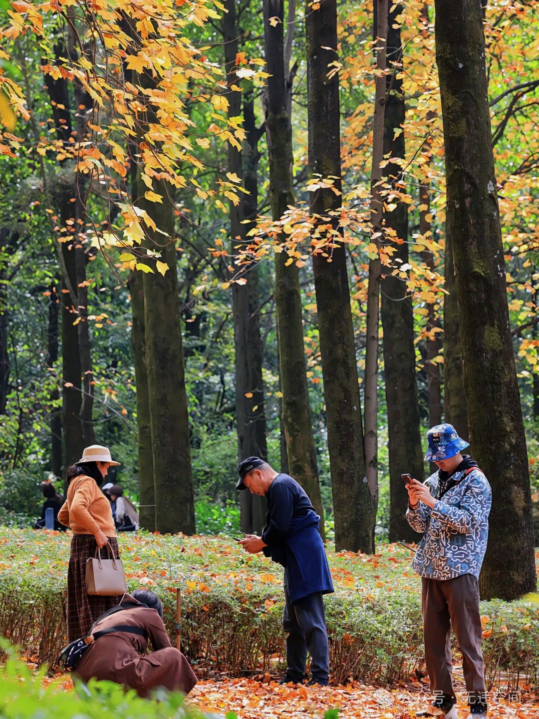 在扶荔宫边上的,也就是枫香大道左侧的那片树林,感觉落叶归根已经过半,想要去拍照的游客还需抓紧时间前往。