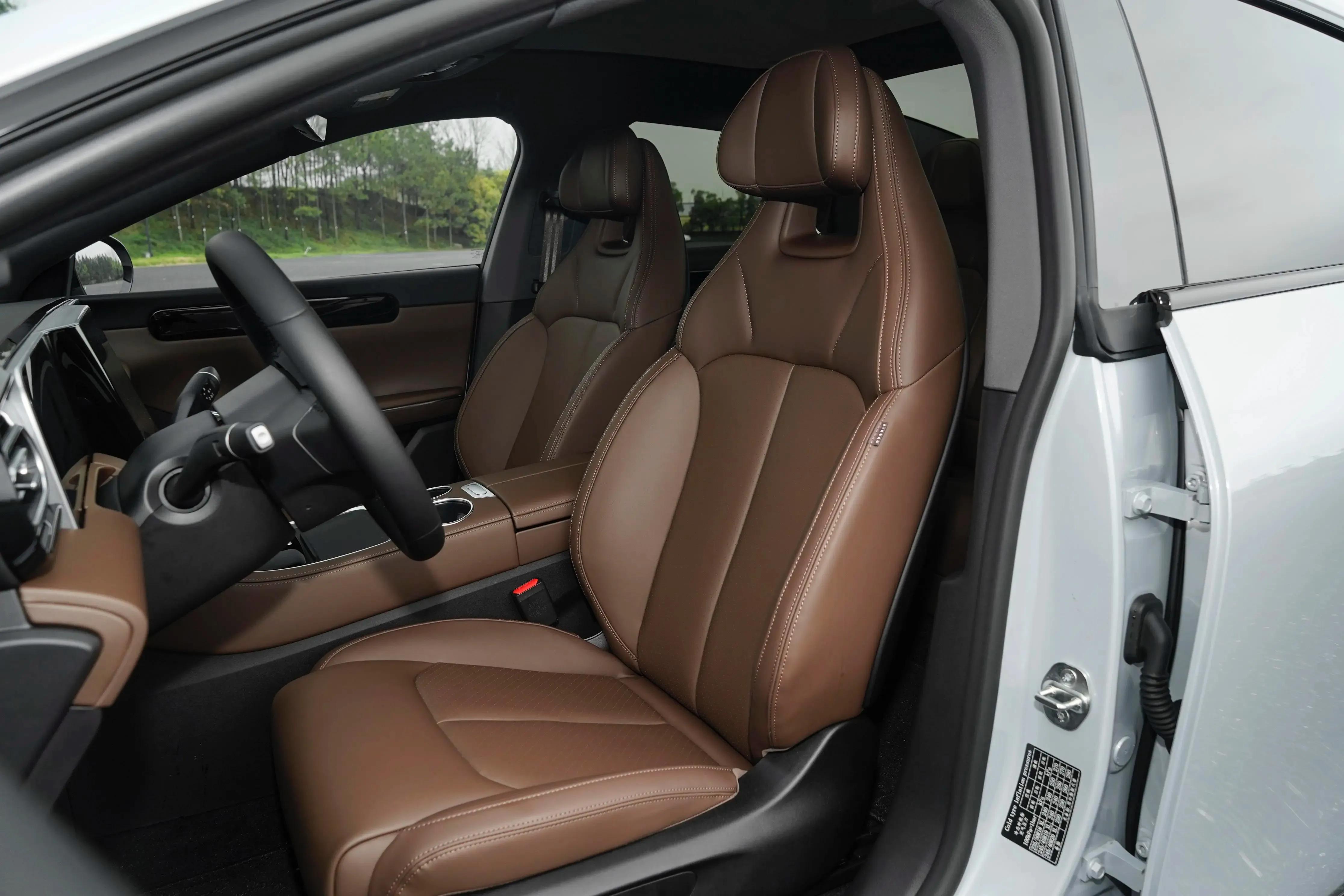 本人身高180cm,体重70kg,坐进前排时,视野和舒展空间感觉比较舒适,座椅是质感不错的仿皮材质,是包裹式运动座椅设计,支撑性不错。