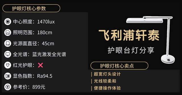 护眼灯哪个牌子更好更专业耐用?这款琪朗护瞳Pro台灯整体的设计感是比较强的,但它整体采用的是亚克力材质,在质感上可能不如那些金属合金的好。从整个照明来说,它的背光设计比较有亮点,可以补充墙面或者桌面的环境光,长型书桌会更适用一点,它的中心照度为1200lux,达到了国AA级标准。从光谱上来说,它虽然补充了红光但采用的也是蓝光激发全光谱,在蓝光控制层面其实并不是很理想。