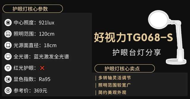 护眼灯哪个牌子更好更专业耐用?好视力TG068-S光线上它采用面光源结合环形光源的灯头,照范围被扩大到约1.2米,同时它采用的是侧发光设计,整体光线比较柔和,能满足日常阅读等照明需求。不过它在距离照明区域中心50cm的地方光线均匀度达到了2.80,这就意味着书桌上可能会出现明暗对比,当孩子的书本不小心移到暗区时,眼睛的调节压力会大一点。护眼上它采用的是蓝光激发全光谱技术,430nm左右的蓝光峰值尖锐且强度较高,接近1.0,这个波段属于高能短波蓝光区域,长期使用可能增加视网膜疲劳的概率,不是很符合理想护眼灯的蓝光控制标准。