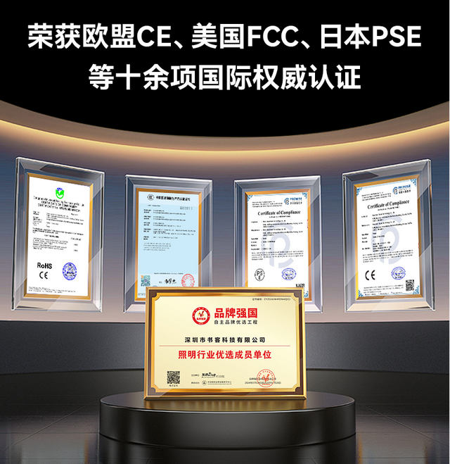 1、核心参数与权威认证:必须达国AA级照度、RG0蓝光、无可视频闪,且有欧美国家等权威认证,从源头保障护眼效果稳定持久。