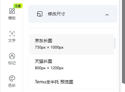 (1)预设尺寸:直接选取平台已有的默认尺寸;