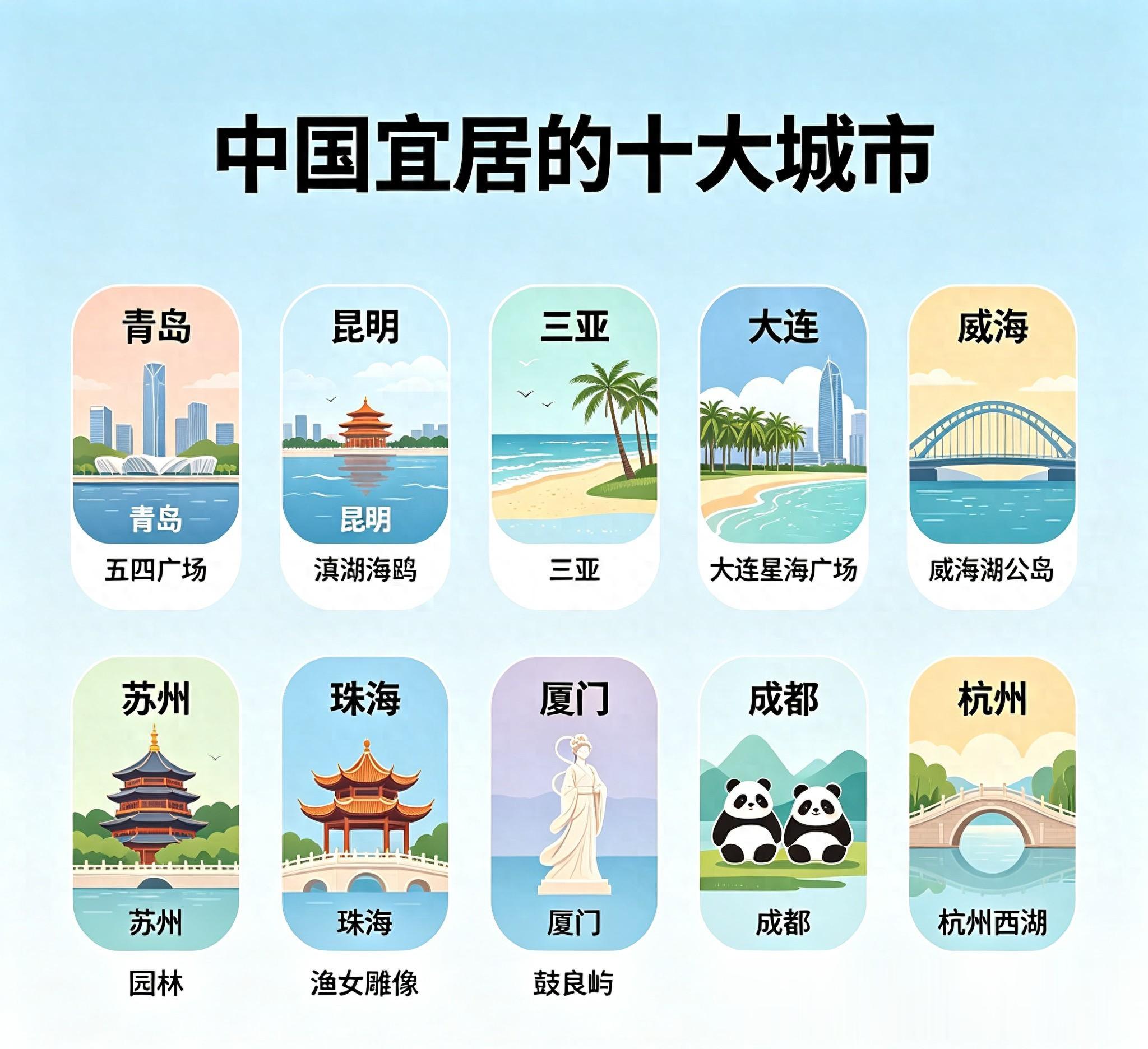 以上陈列的十大城市,有你所在的地方吗?你觉得还有哪些城市十分适宜居住呢?