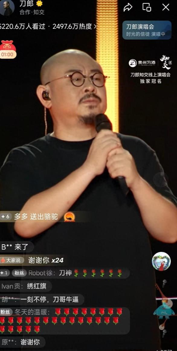 或许是身在故乡情绪总会特别高涨,线上演唱会当晚刀郎在家门口把自己所有的成名作都唱了一遍,《2002年的第一场雪》《冲动的惩罚》《披着羊皮的狼》等等。