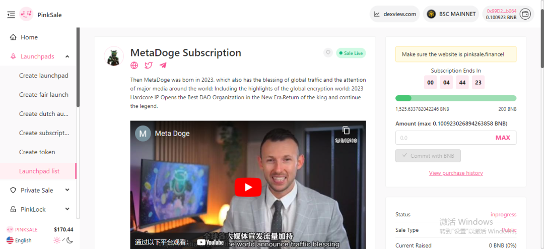 元狗 Meta Doge 将在粉色平台上通过两轮的超募后面上线去中心化交易所进行兑换,第一轮是1月11号至1月12号,第二轮在第一轮结束后开始,为其24小时,笔者预计1月14号元狗 Meta Doge 可以在去中心化交易所购买。截至1月12日元狗 Meta Doge 在粉色上的第一轮超募已经达到1500BNB