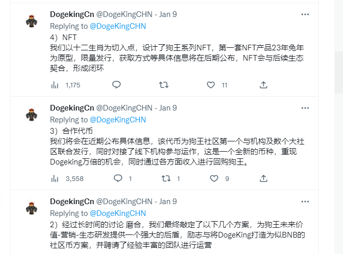 笔者从网上信息得知1月9号狗王推特发布了重要的生态布局和发展规划,这应该是这次涨幅的重要推动之一,那么这次的发展规划有哪些主要的内容呢?