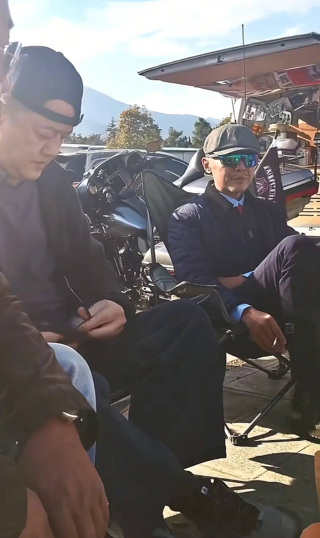 在他们身后有几辆高排量的机车摩托,他们应该是刚刚结束了骑行。李亚鹏五十多岁了,依然热爱激情与自由。
