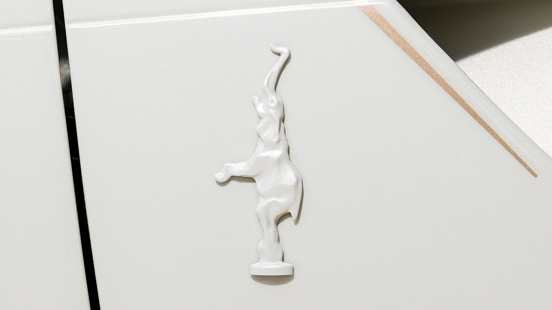 布加迪百年传承的“跳舞大象”图腾被巧妙融入,前翼子板与头枕上也印有该图腾。这只以安特卫普动物园大象“雷切尔”为原型的雕塑,曾用于经典Type 41 Royale车型,如今成为连接品牌百年历史与现代技术的纽带。