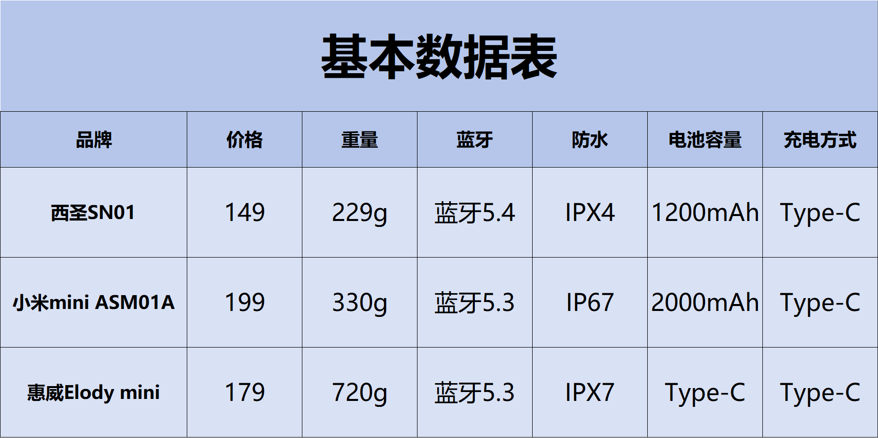 下面是我给大家总结的三款蓝牙音箱的一个基本参数表,方便大家更加快速的了解以下三款音箱