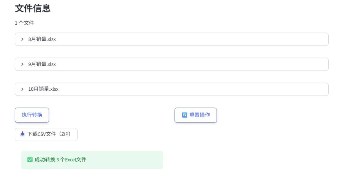 多个Excel文件批量转为CSV格式,导入多个Excel文件,批量转化后,就会得到内容相同的CSV文件,不同的sheet会单独导出一个CSV文件。