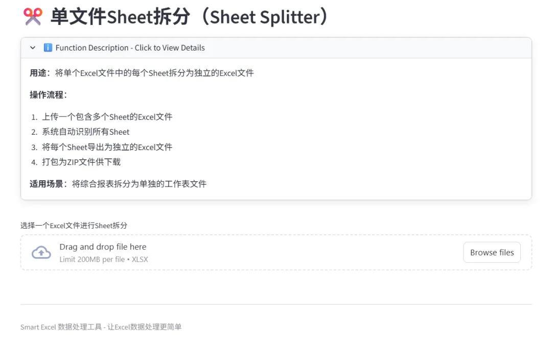 单文件的Sheet拆分,导入单个Excel后,它会把该Excel的n个Sheet拆分到n张Excel中。