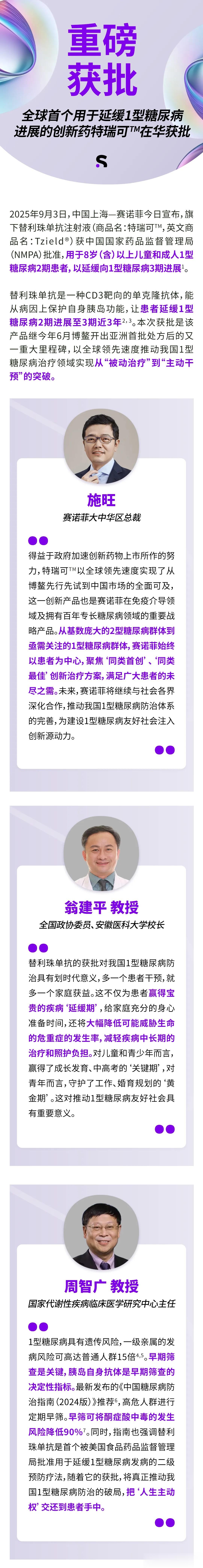 重磅 | 首个用于延缓1型糖尿病进展的创新药特瑞可™在华获批