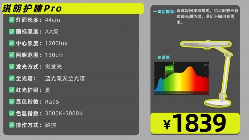 推荐理由:智能调光功能可随环境光自动调整亮度,还支持五档手动调光。