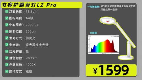 推荐理由:有读写网课双模式,也可轻触三段式调光调色温,满足不同用光需求