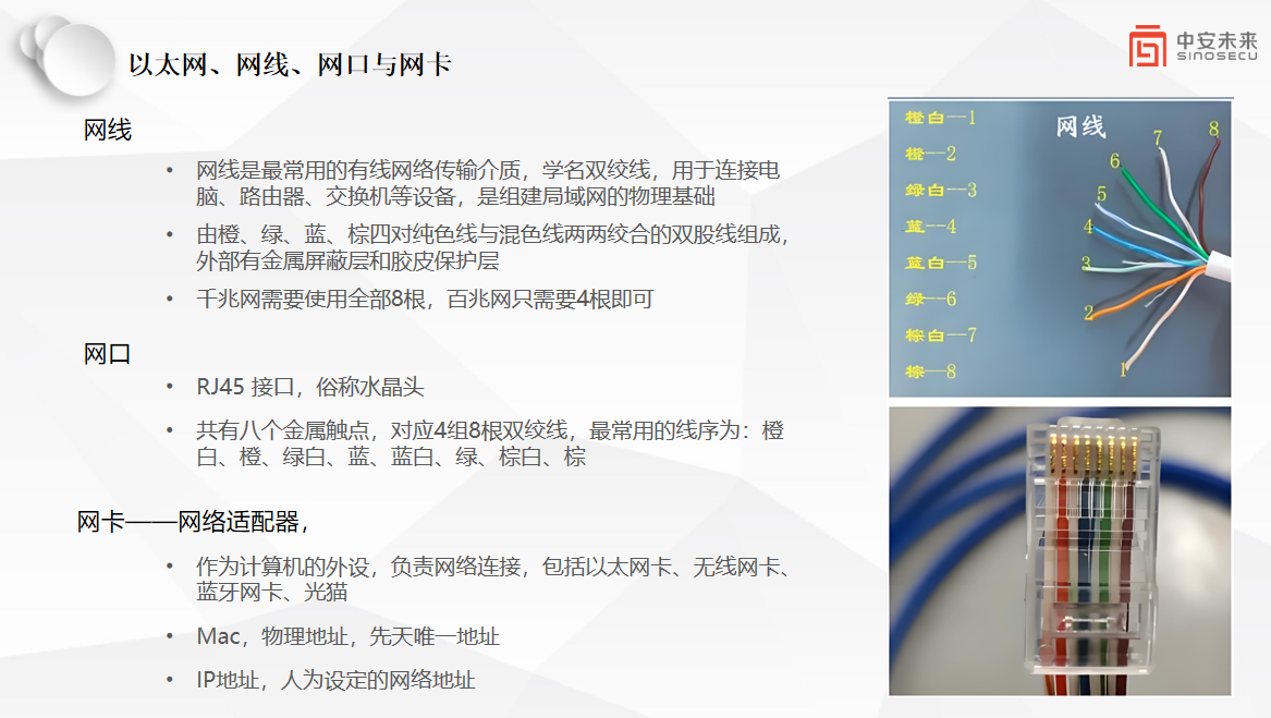 很多人不知道,网线里的 8 根线分工大不相同:早年的百兆网络,只需要用到橙白、橙、绿白、绿这 4 根线就能完成数据传输;但现在普及的千兆网络,必须用到全部 8 根线,才能实现双向高速数据传输。我们平时压水晶头时,最常用的 T568B 线序也有明确标准:橙白、橙、绿白、蓝、蓝白、绿、棕白、棕,两端线序一致,才能保证信号稳定传输。