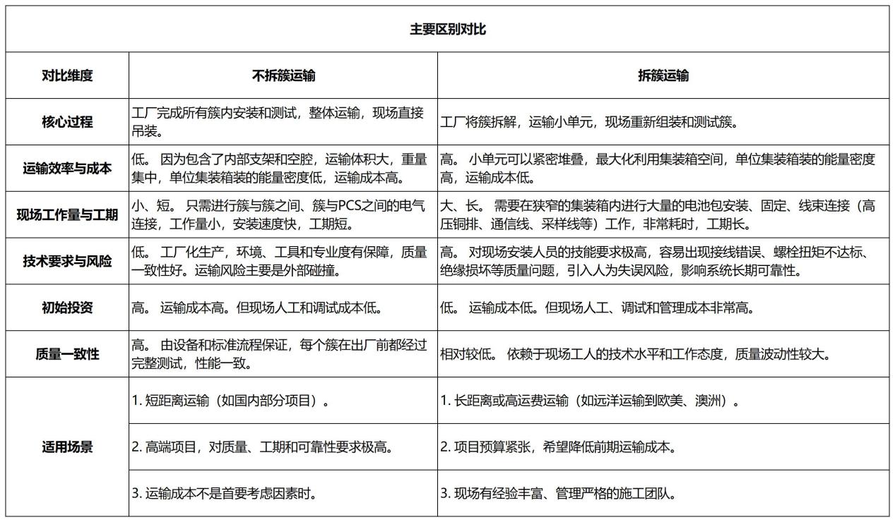 目前,随着对储能系统安全性和可靠性要求的不断提高,以及“整柜运输”技术的成熟,越来越多的项目,特别是大型电站项目,开始倾向于采用 “不拆簇”甚至“整柜”运输 的方式,以将质量最大限度地控制在工厂端,实现现场的“搭积木”式快速部署。