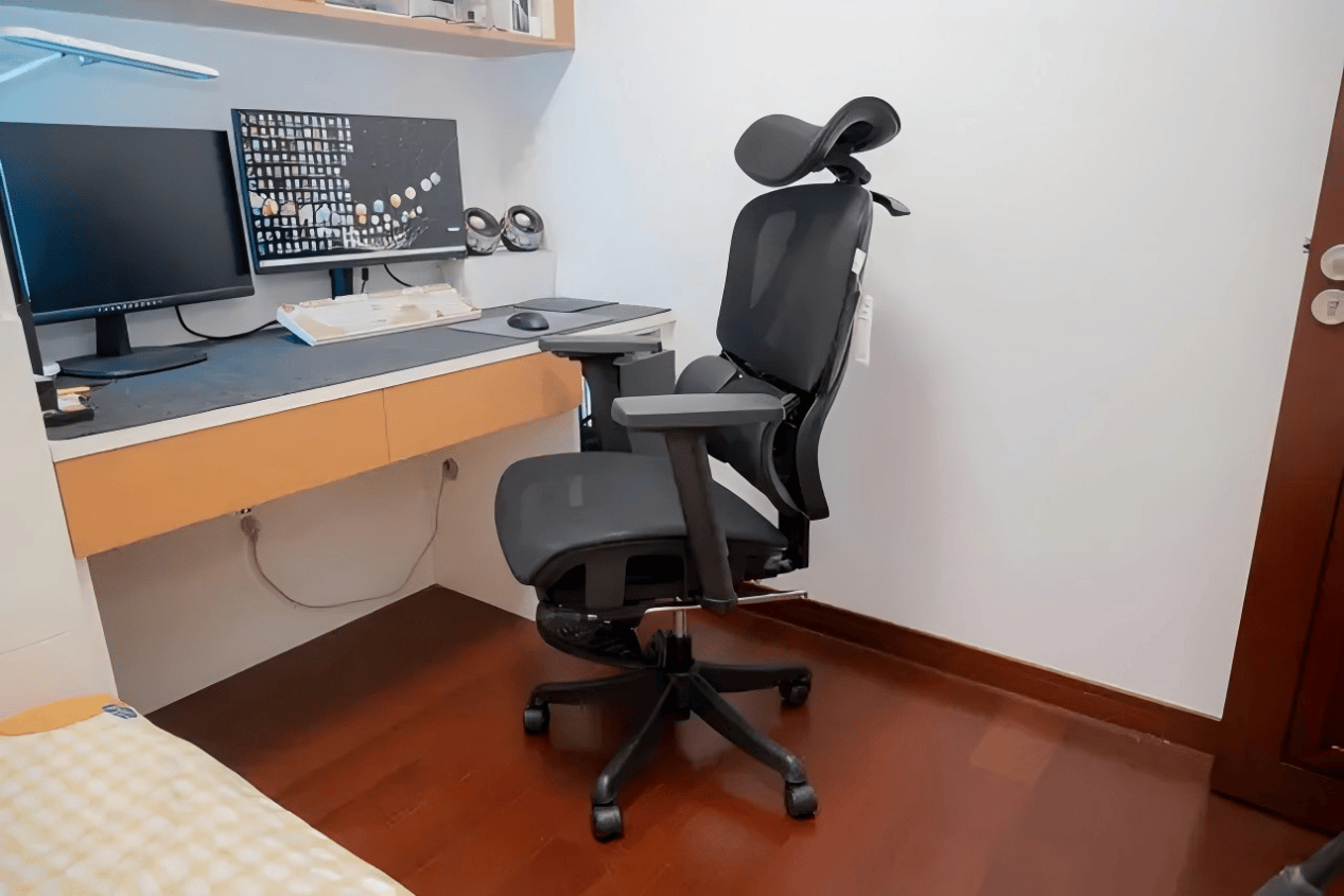 坐感偏偏硬中带弹,更强调“撑得住”而不是“沙发感”,适合长时间专注办公。