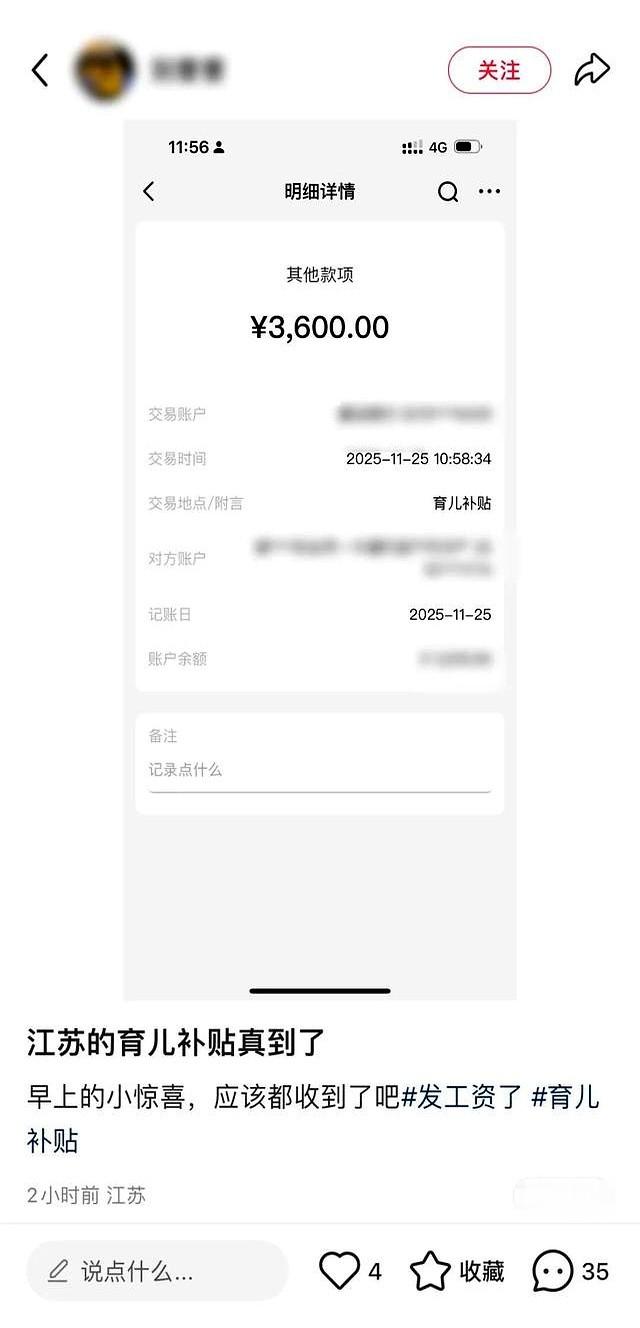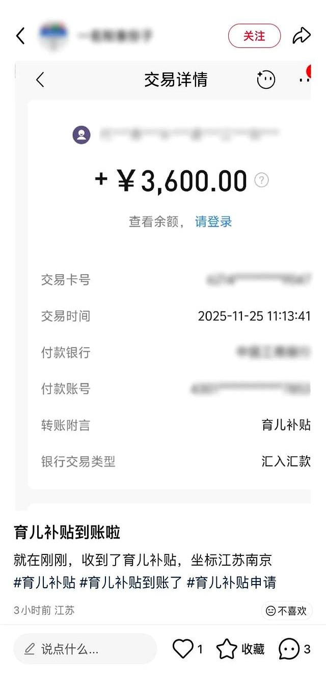 江苏这边已经有人收到育儿补贴了,一年3600,这消息是真的,赶紧看看你有没有份!