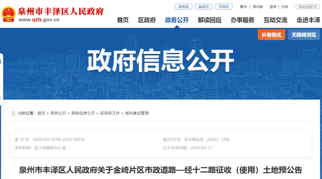 为实施泉州市丰泽区国民经济和社会发展规划、泉州市国土空间规划,根据《中华人民共和国土地管理法》等法律法规的规定,现发布金崎片区市政道路—经十二路征收(使用)土地预公告:
