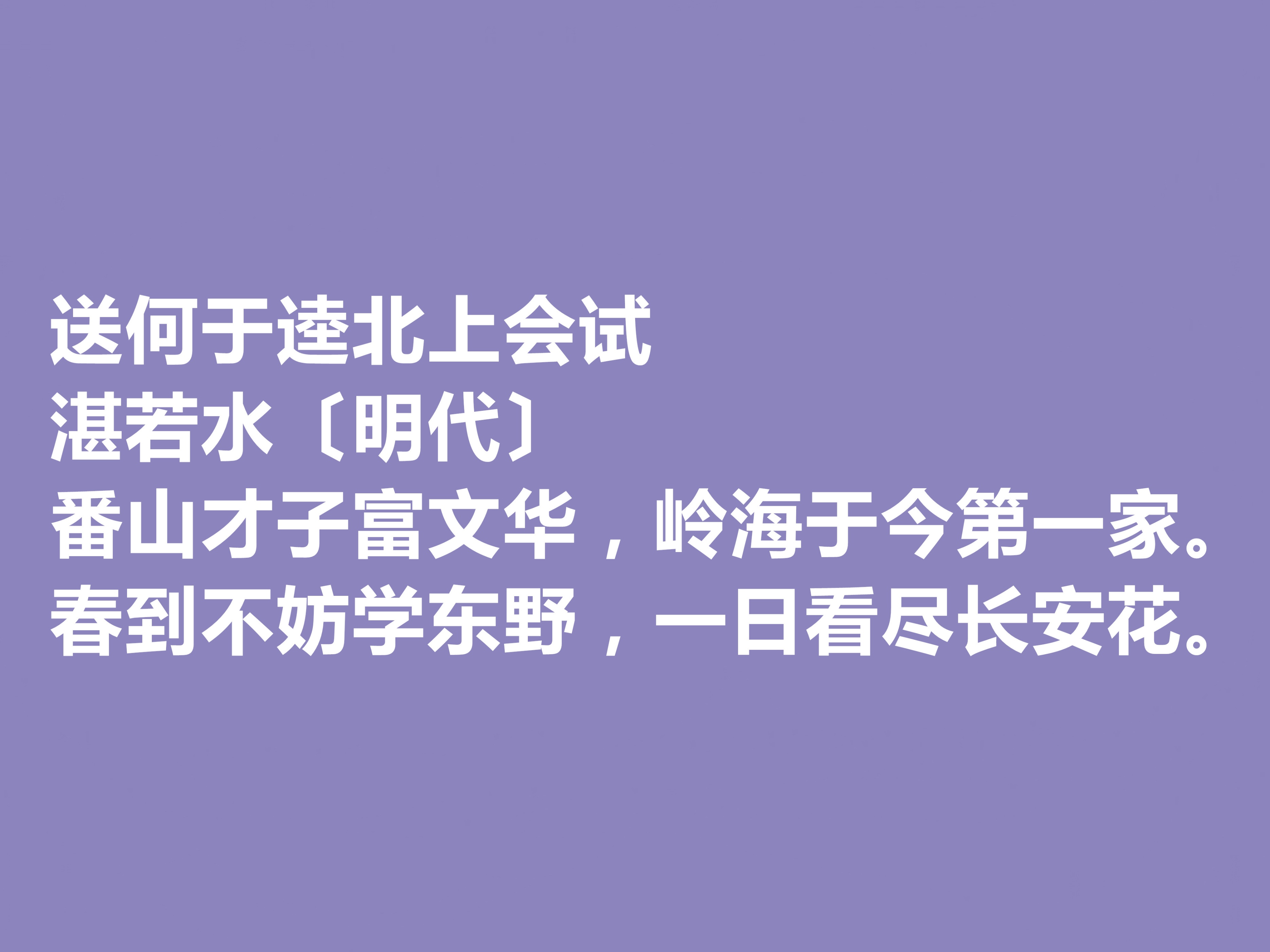 明代中叶,思想文化领域群星璀璨,湛若水作为集思想家、哲学家、教育家、书法家、文学家于一身的文坛巨擘,占据着举足轻重的地位。政坛之上,他历任翰林院编修、南京礼、吏、兵三部尚书,为官清廉正直,直言敢谏,积极革除吏治弊病,为明代中后期的政治稳定注入了一剂强心针,今天我们来欣赏他的十首诗。