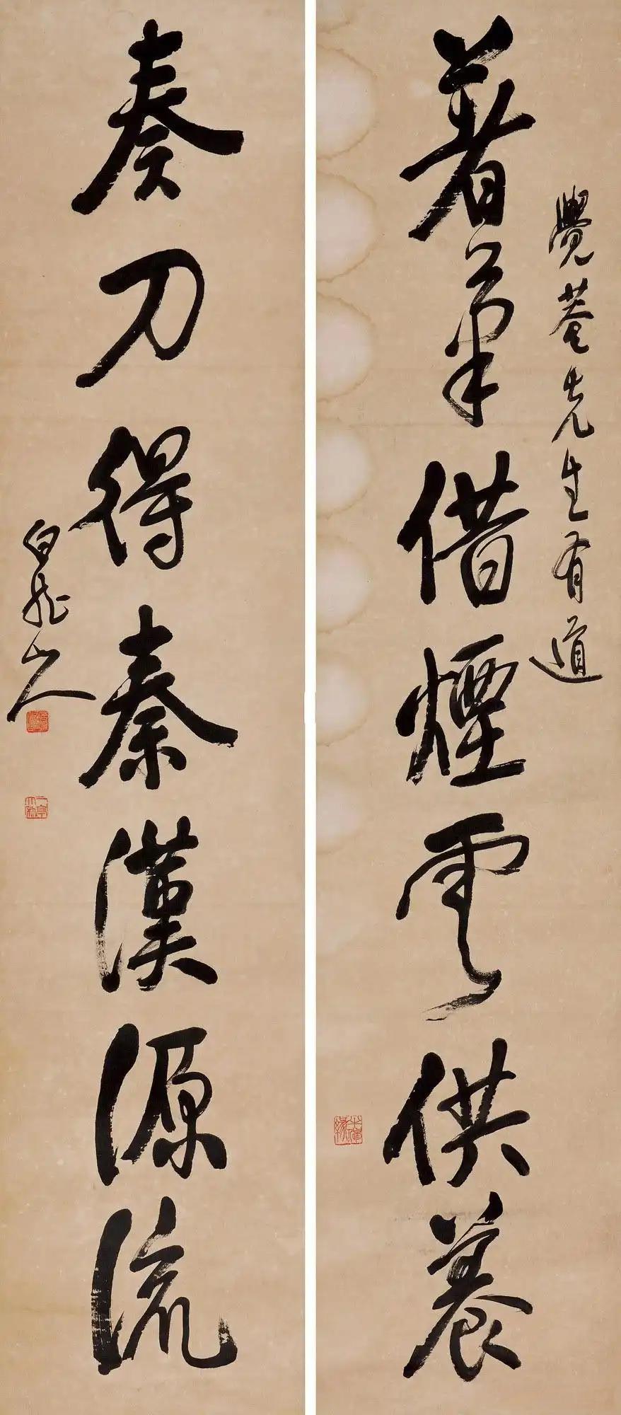 观王一亭书作,最引人注目的是雄强与静穆并存的气质。用笔上,他吸收了吴昌硕的浑厚苍劲,但减少了“霸悍”之气,增添了佛家的圆融与平和。起笔多藏锋内敛,行笔中锋为主,收笔或回锋或放锋,自然而不做作,线条圆润浑厚又不露锋芒。结字往往外松内紧,多取纵势,重心稳定,庄重而肃穆,这与他研习北碑及颜真卿书法有关,也与其佛教信仰相契合。