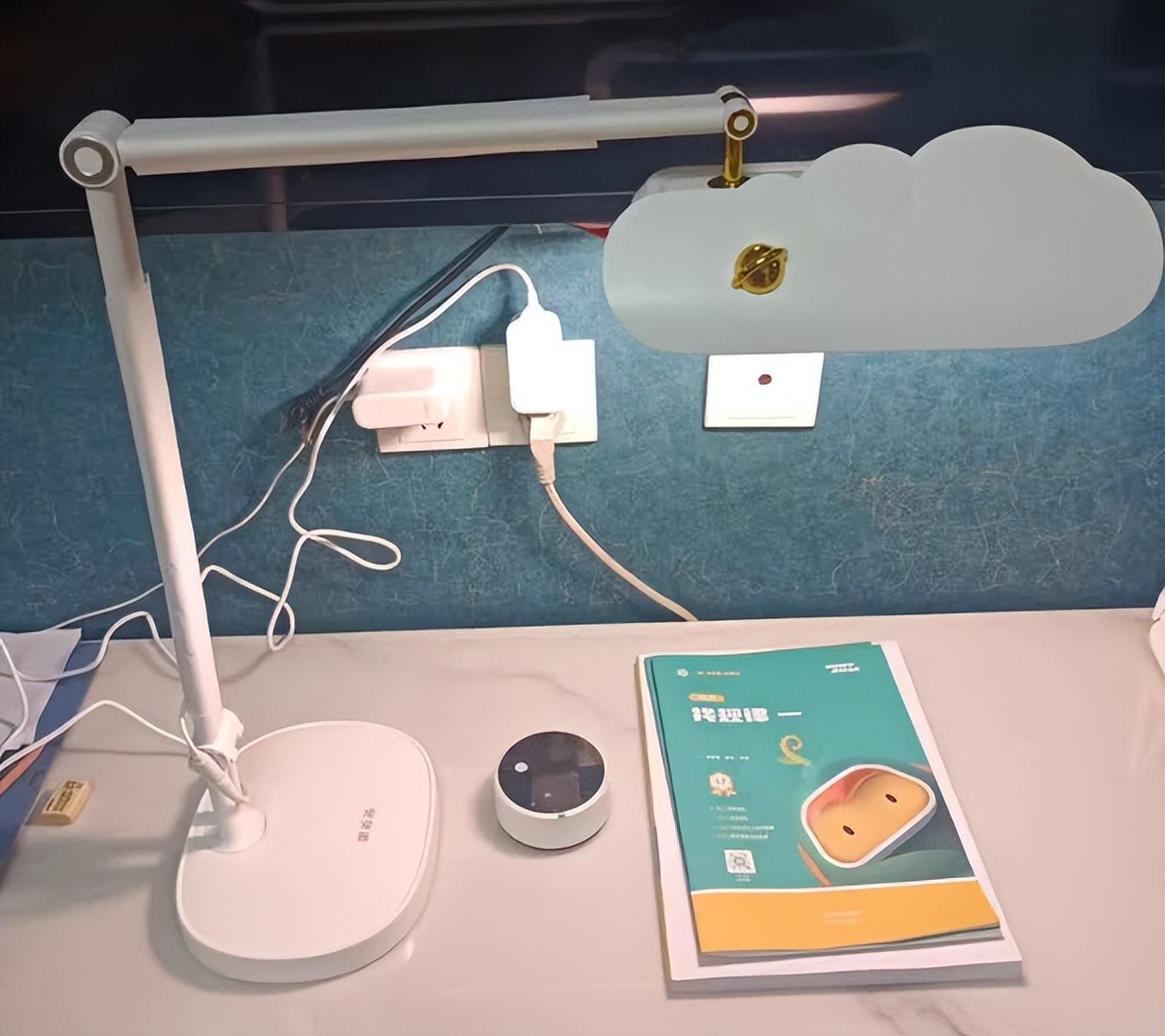 ✅ 童趣可爱外观:云朵形状白色灯头搭配金色装饰细节,风格清新,适配学生儿童学习场景。
