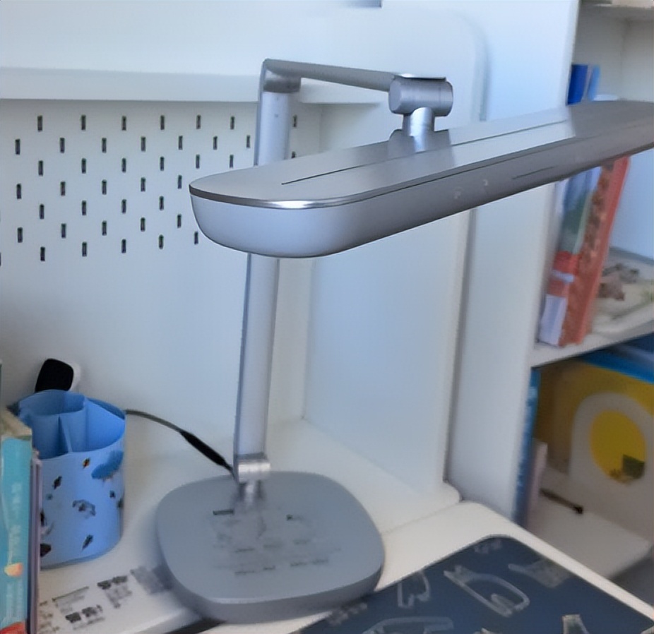 调节方面表现不错,采用多关节支架款式,底座是扁圆形设计,摆放稳固不易晃;灯杆通过多个转轴连接,能灵活调整灯头的角度和高度,无论是不同坐姿的学习需求,还是适配不同高度的桌面,都能较好地满足,使用起来比较灵活。