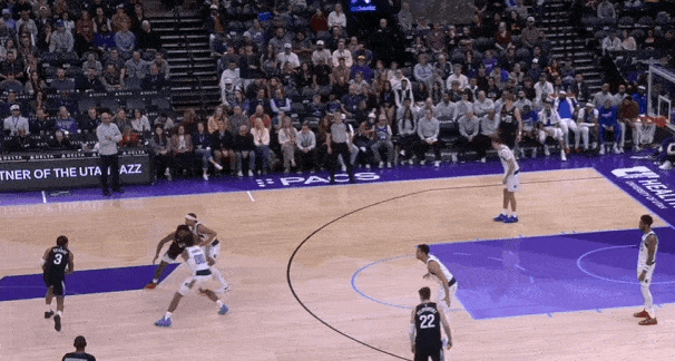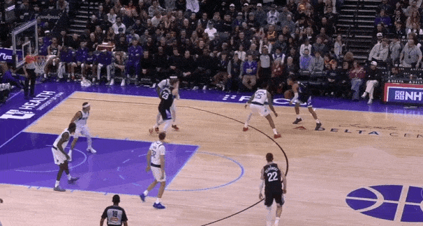 先借克利尔的掩护要到优势对位,随后衔接和马卡的边路挡拆配合,见小内姆走下线绕防,立即一二步急停的同时完成左手合球,挡拆持球三分手起刀落。