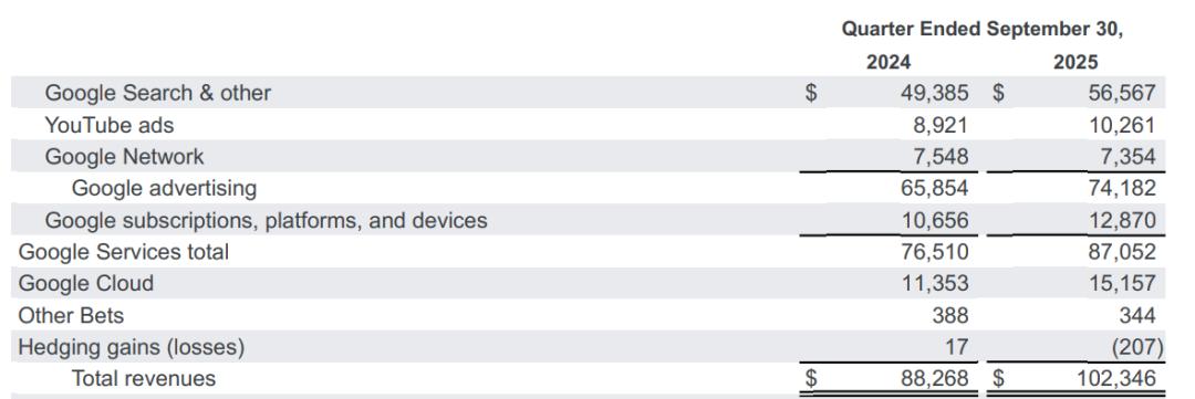 2025 年第三季度,谷歌的总收入达到 1023.5 亿美元,是史上首次突破 1000 亿美元大关,同比增长了 16% 。净利润 350 亿美元,同比增长 33% 。