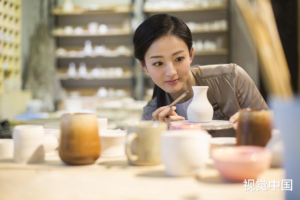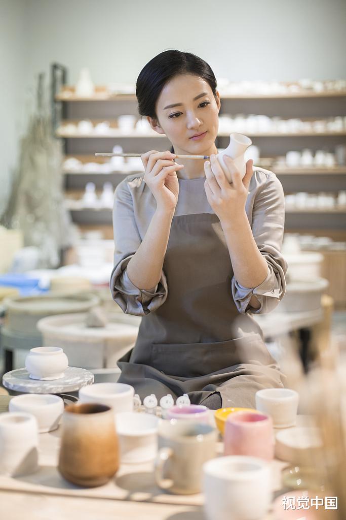 我给一个素坯上釉,头也没抬。