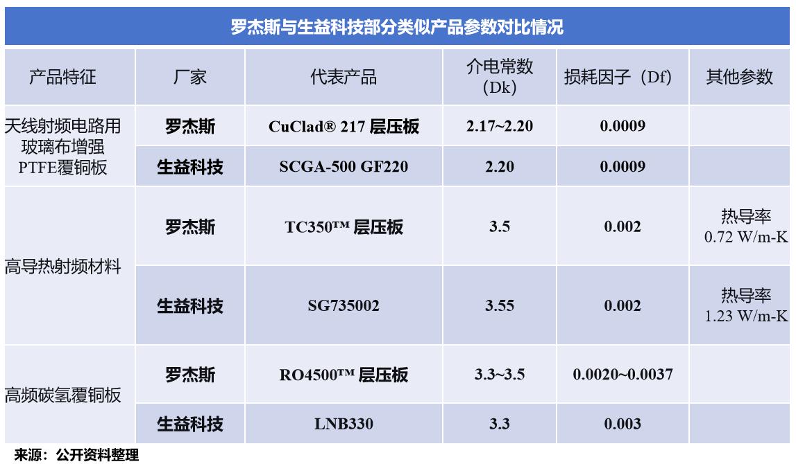 如今,生益科技在高端高频高速覆铜板领域部分产品的技术参数(Dk值、Df值、导热率等)几乎追平国际巨头罗杰斯。