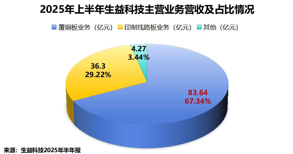 生益科技自1985年成立至今,始终以覆铜板为核心主业。2025年上半年,其覆铜板业务实现营收83.64亿元,占主营业务营收的67.34%。