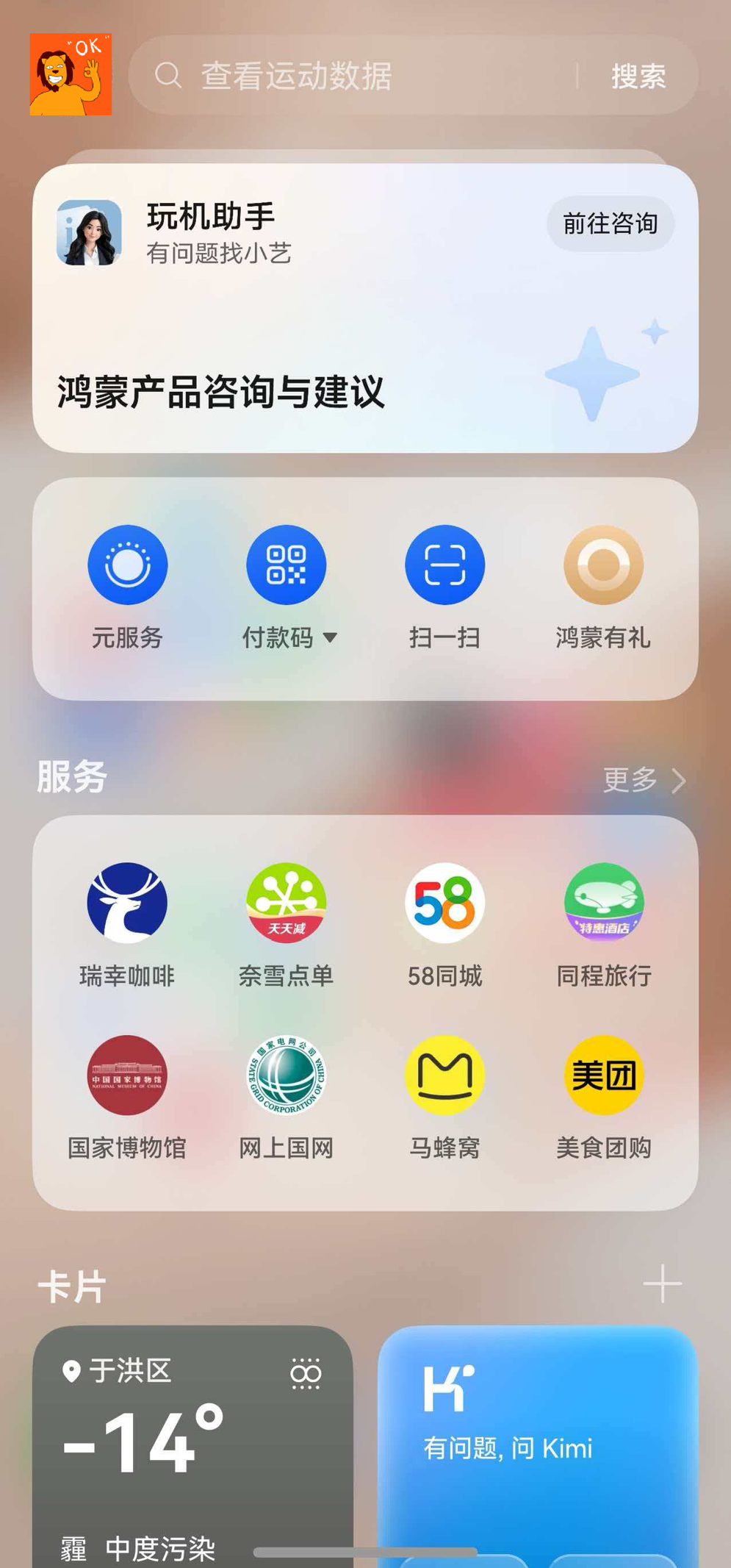【负一屏玩机助手】就能轻松搞定:只需在手机桌面右滑进入负一屏,一眼就能看到“玩机助手-鸿蒙产品咨询与建议”卡片,点进去后就能和小艺对话。