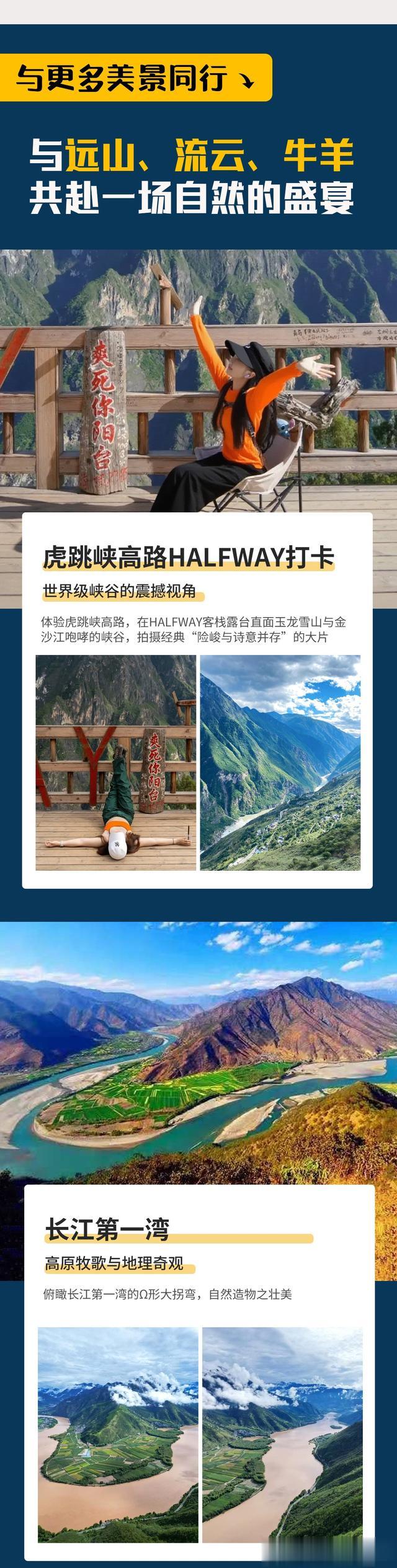 【适合人群】适合首次或再次到访滇西北,希望深度结合的玩家;追求‘人少景美’的小众轻徒步体验;适宜轻徒步小白,以及喜欢摄影的旅行者;是您夏季避暑的不二选择;