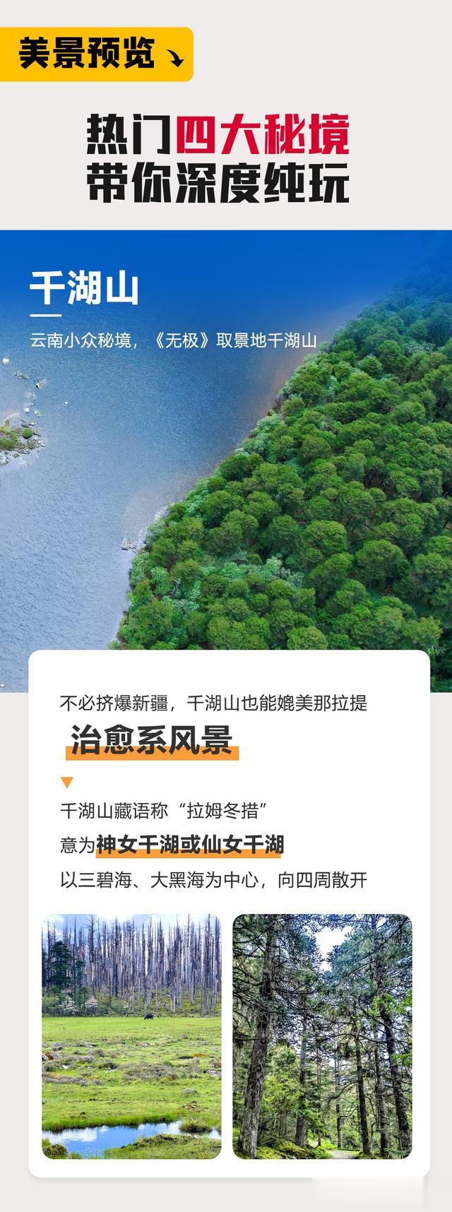 2、千湖山是香格里拉的秘境,神秘的自然保护区,人迹罕见,此行程为野外徒步,山风较大,紫外线较强,请务必注意保暖和防晒;海拔3900米左右;