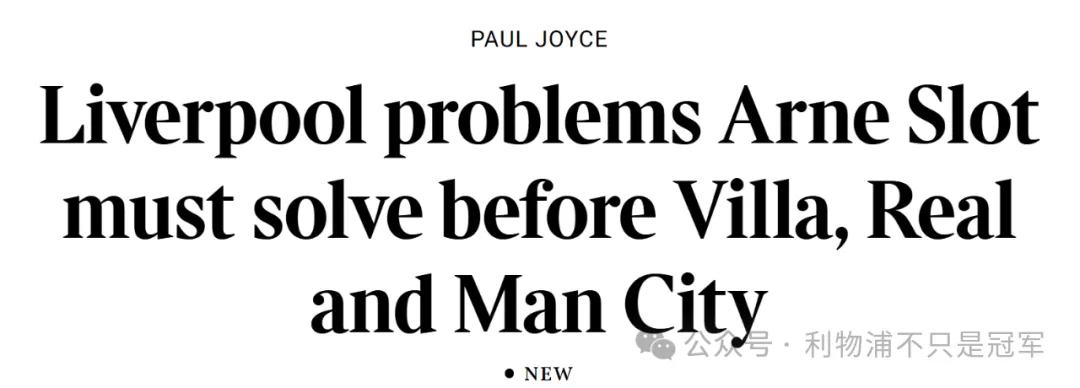 《泰晤士报》也指出,在迎战未来三场对维拉、皇马和曼城之前,斯洛特必须解决球队以下问题:第二落点的争抢、索博斯洛伊必须打中场、维尔茨和萨拉赫的取舍等等。总之,斯洛特需要做出一些重大的决定,来证明自己可以改变现状,现在不是抱怨的时候。