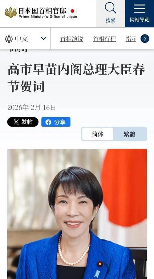 耐人寻味的是,就在中方制裁公布前几日,高市早苗刚刚通过首相官邸官网以四种语言发布了春节贺词,祝愿“新年世界和平、民众生活安宁”。然而,细看其不同语言版本,却能发现明显差异。