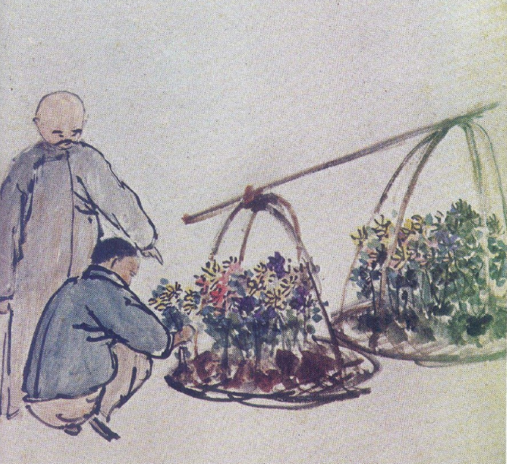 ——九花者,菊花也。每届重阳,富贵之家以九花数百盆,架庋广厦中,前轩后轾,望之若山,曰九花山子。四面堆积者曰九花塔。——重阳时以良乡酒配糟蟹等而尝之,最为甘美。良乡酒者,本产于良乡,近京师亦能造之。其味清醇,饮之舒畅,但畏热不能过夏耳。鸭儿广,梨属,形如木瓜,色如鸭黄,广者黄之转音也。柿子、山里红,其用尤多,皆京师应序之物也。