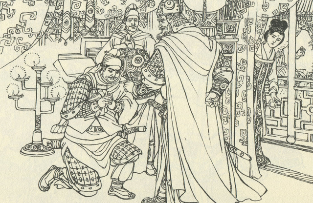 这一天,贺芳正在城外营中大帐独自喝闷酒。小校前来报告,有济州节度使唐壁差人送来密报。贺芳唤道:“请差官进来。”