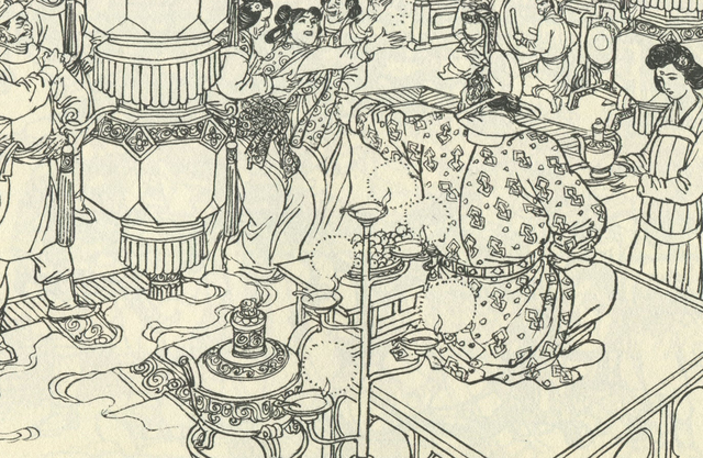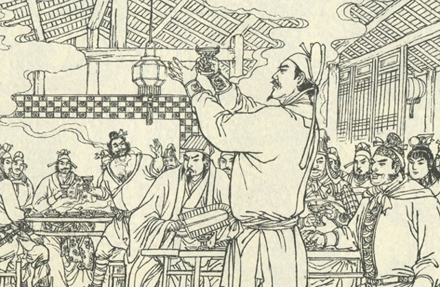 上册说到,众英雄前来给秦母祝寿,秦琼在贾家楼设了酒宴。席上,叔宝亲自把盏为众英雄斟酒,他端起酒杯说道:“诸位兄弟,感谢各位来给家母祝寿。此杯是我敬奉各位的谢席酒,务必请大家一饮而尽!”