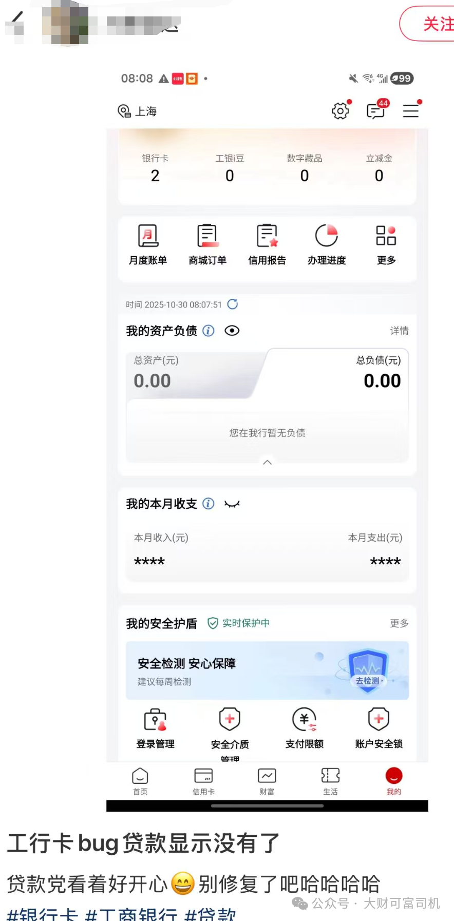从昨天晚上到今天早上,社交平台上多位工商银行储户表示,登录工行APP后发现资产被清零。