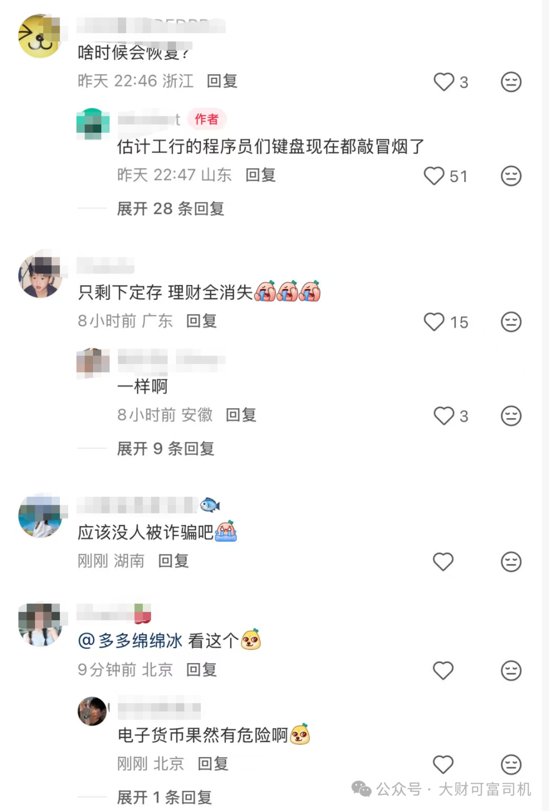 当时,面对舆论的质疑和担忧,工商银行和建设银行均采取低调处理的态度。两家银行并未在“双微”等官方新媒体渠道进行公开回应,而是选择通过接受媒体采访以及线上回复客户的形式进行解释。但在系统恢复正常后,依然有不少网民在社交媒体平台上询问处理进展与具体原因。