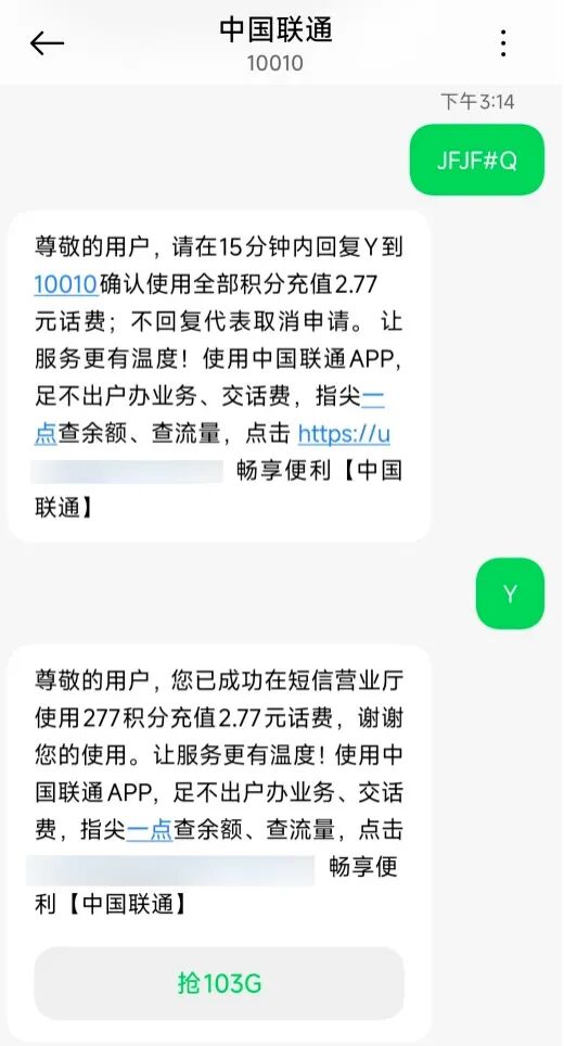 联通会回复确认短信来显示具体可以兑换到的话费信息,用户回复“Y”即可确认。