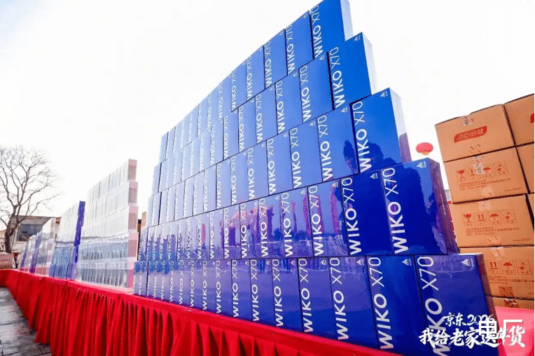 1月29日,江苏宿迁,京东集团创始人刘强东为光明村村民送上的年礼中,一款名为WIKO X70的大屏AI手机格外醒目。不久后,“刘强东送年货上千部手机垒成一面墙”登上热搜,让这个对多数国人尚感陌生的手机品牌,闯入了大众视野。