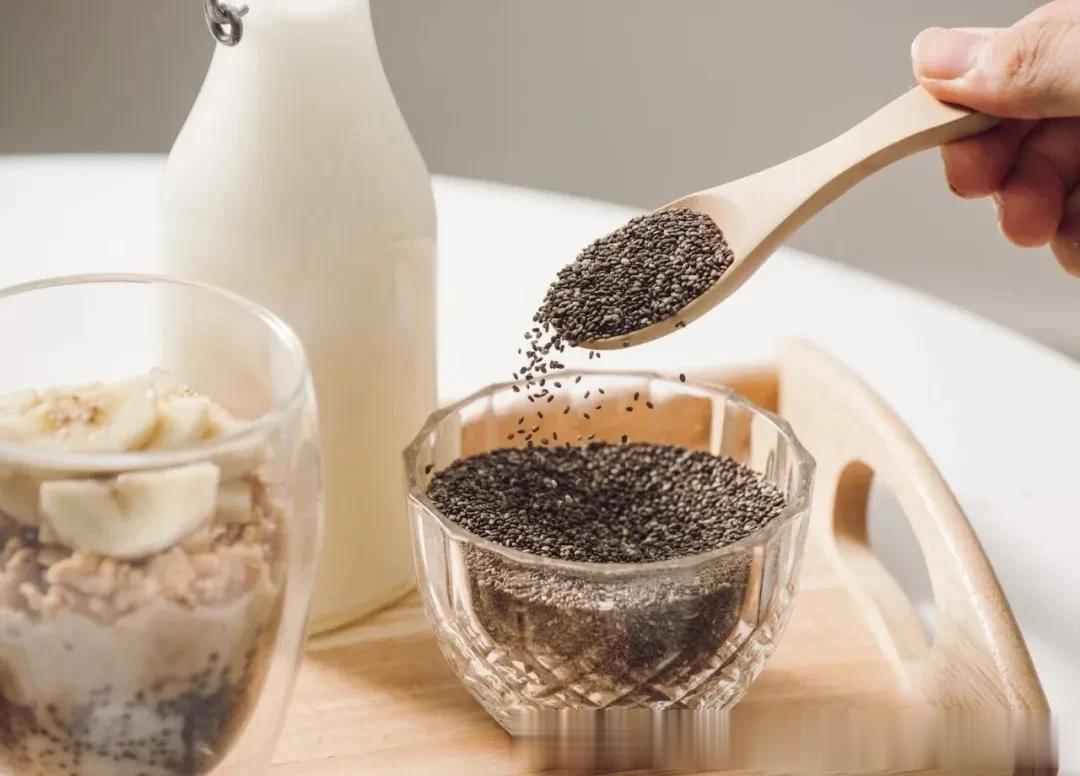 ▶ 奇亚籽/亚麻籽(每15g含5g纤维):遇水膨胀形成凝胶
