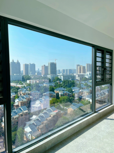 先说灰玻,单从颜值来看,它确实很对杭州人的审美。浅灰的色调自带高级感,装在阳台上,既不会像普通白玻那样让室内光线过亮刺眼,又能过滤掉一部分阳光中的杂色,让窗外的西湖群山、小区园林看起来像加了一层「柔焦滤镜」。而且灰玻的隐私性也更胜一筹,白天从室外看,玻璃会呈现淡淡的反光,不容易看清室内;到了晚上,只要室内灯光不是特别亮,也能保持一定的私密性。