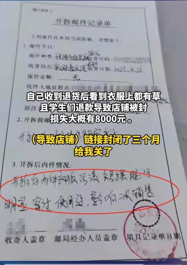 结果学生们集体退货,这60件裙子就回到店家手里。关键是这退货量直接让店家网店被封了三个月,衣服一共4000多,封三个月损失更大了。