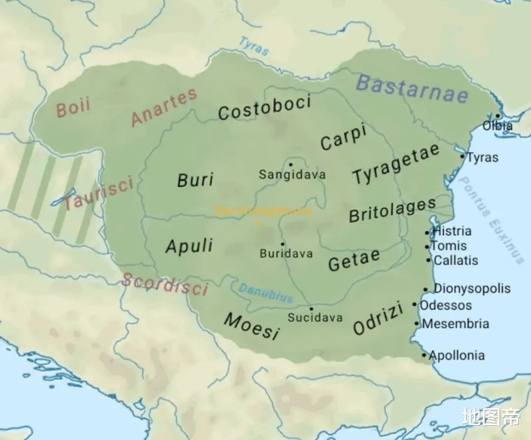 106年(东汉殇帝延平元年),罗马帝国图拉真时期,灭亡达契亚王国,设达契亚行省。这个达契亚,疆域大致在喀尔巴阡山脉和多瑙河下游,鼎盛时包括今罗马尼亚、保加利亚、匈牙利、摩尔多瓦大部分地区。