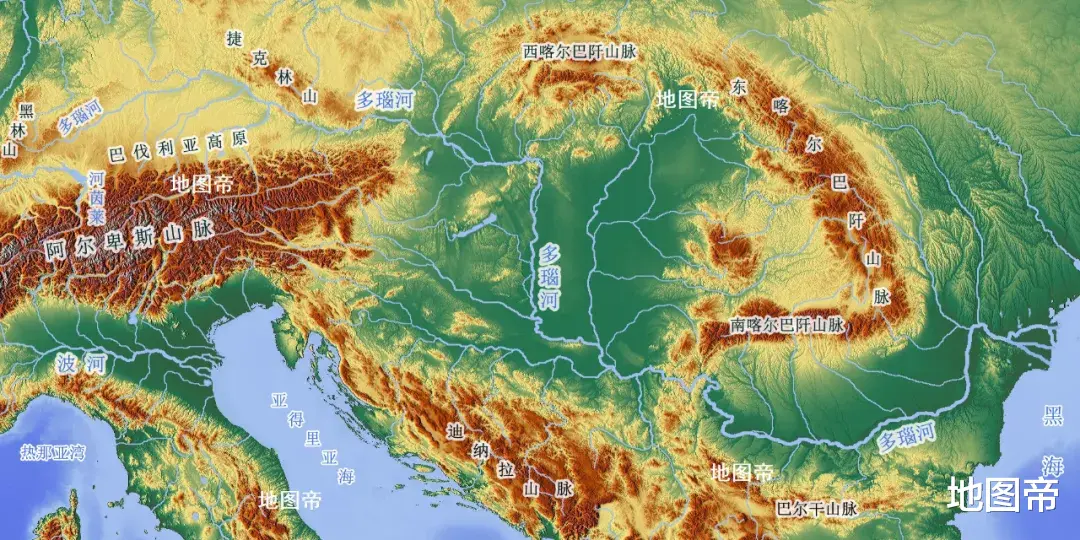 多瑙河,长约2850千米,是欧洲第二长河,为世界上流经国家最多的河流,干流经过9个国家,从上游到下游分别是:德国、奥地利、斯洛伐克、匈牙利、克罗地亚、塞尔维亚、保加利亚、罗马尼亚、乌克兰,最后注入黑海。